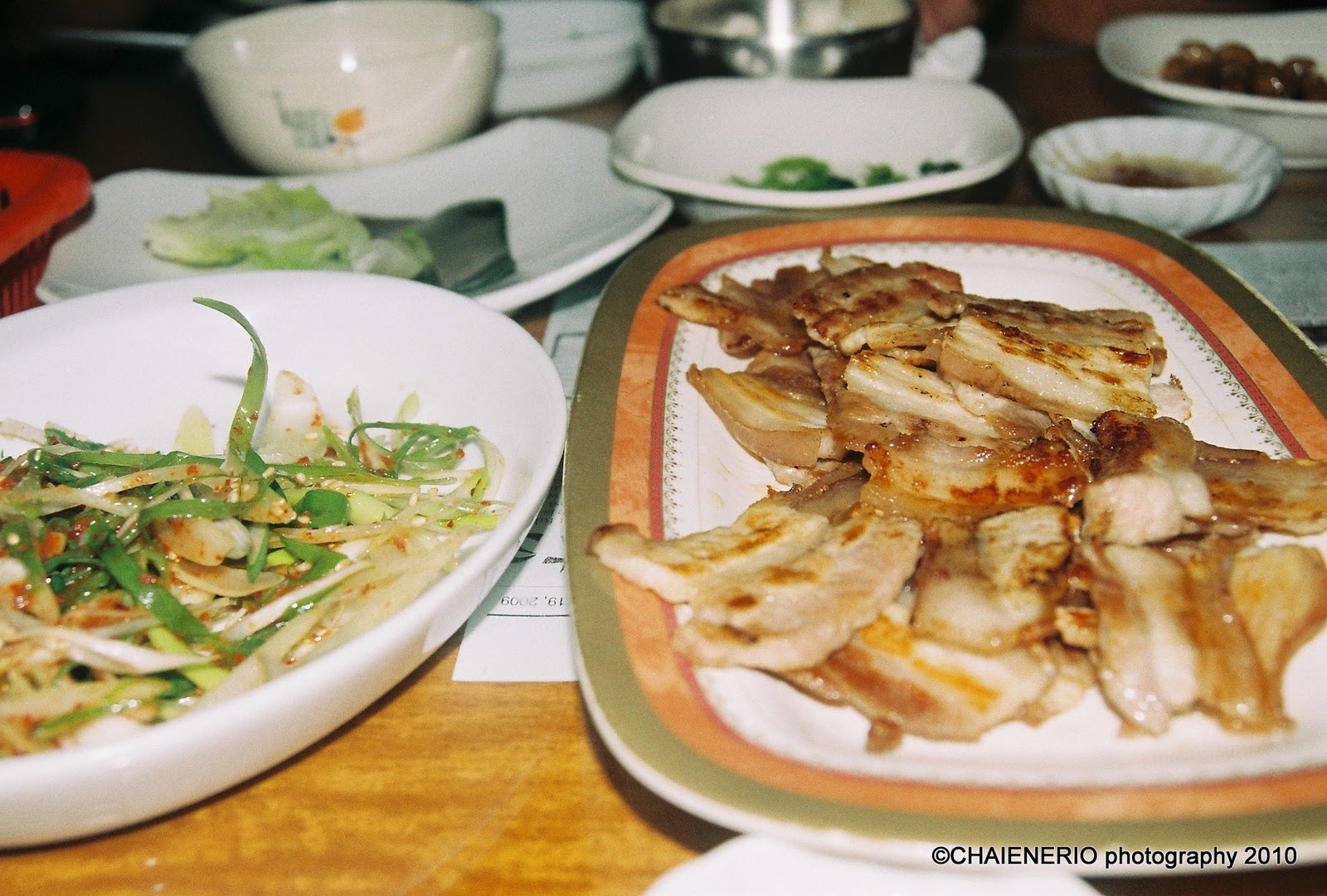 One night when my sister was here for a short break, we went out to this restaurant that I had wanted to try for a few months now. No surprise, it was a Korean restaurant which a friend had said is really authentic albeit the interiors of the said restaurant are not really that nice. My sister asked her high school classmates to accompany us as it’s always better to eat out with a lot of people. More persons to share the bill and you can order a lot more of the dishes available. 🙂My friends had told me the restaurant was in Burgos St. along Makati’s supposed “red light” district. It was an unassuming very small restaurant that had a Korean proprietor and before you could get to the actual dining area, you had to pass through their prep area which was quite funny. Inside only a few tables were there like less than 10 and the capacity for this restaurant could just be around 20 max. The furniture was very simple. Plain wooden tables and chairs and some Korean writing on the wall stating their menu which I could not understand. The cashier, I think, was the owner’s wife and she was watching the TV which was on the Korean channel quite avidly.We were welcomed with warm smiles from the smiling Ahjussi (Korean respect word for an elder man) who led us to the big table which could comfortably seat 6. We were in total 5 so it was a fit. We were then given cutlery to use – steel chopsticks and the long spoon of which Korean diners normally use. There were also wooden chopsticks available upon request.After we were seated, the waitress immediately served as a bunch of Banchan (Korean side dishes). Take note the Banchans were free and we could also ask for a refill once. That was something else. The Banchans actually made me a bit full. They had some sauteed spinach (Sigeumchi Namul), the ever familiar Kimchi, bean sprouts (kongnamul), white radish strips (Muchae), thin pancakes with spring onions (Pajeon), Korean-style potato pancakes (Gamjajeon), they also had what looked like Dilis (Filipino style small dried fishes) but these fishes were quite tasty. There was also some sweet potatoes in syrup and a few other things that were all good in itself. They were served together with some gochujang (red pepper paste) and soy bean paste which were the perfect condiments that night.For our main dishes, we had some grilled pork belly (Samgyeopsal gui) Korean-style eaten inside a lettuce leaf with some sauteed green onions and gochujang and soy bean paste. This was delicious and I wasn’t able to eat all of my rice. In fact I think I just ate like a quarter because I was busy concentrating on the Korean food.We also had some really spicy and sizzling chicken and of course the Bulgogi (strips of beef) which were really cooked nicely. We also had some Kimbap (Korean version of Japanese sushi). Overall I had a nice time and I also tried the soju as well. Soju is Korea’s staple alcoholic drink, which for me was like vodka. Clean taste, high alcohol content. This worked well after the very very filling and tasty meal. Also it cools down the hotness in your mouth as Korean dishes tend to be on the spicier side.The restaurant actually doesn’t have a name but you can find it on the first street to your right if you are coming from Makati Avenue and going along Burgos St. It is very unassuming with a little Korean lighted sign and the price is just right. If you want the experience of an authentic Korean restaurant, I’d say this little one is quite a find.My ratings:Price: 7/10Place: 5/10Food: 8/10Price Range: Always good to eat in groups so you can have a variety of dishes and not at all expensive. For a party of 5, we each shared around Php200++ and we had a great meal!XoXo -